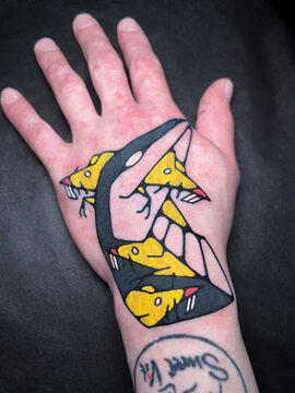 Я Роберт, татуировщик с опытом с 2013 года. Работаю в жанре небольших цветных и чёрных татуировок — в мистической, милой, иногда немного сюрреалистичной стилистике.